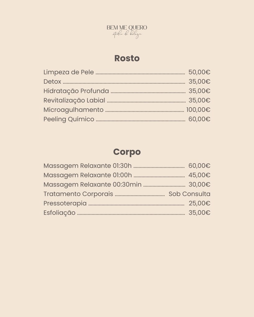 Consulta todos os nossos serviços e valores.